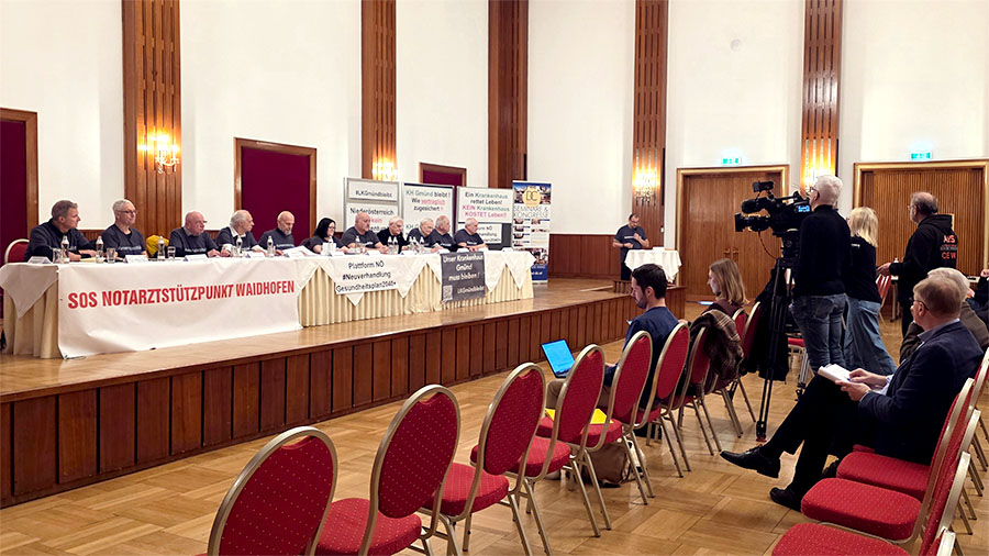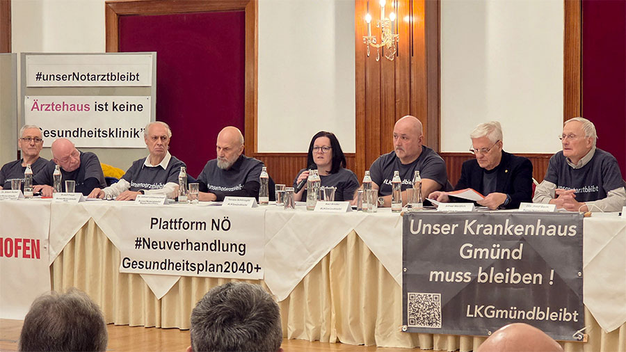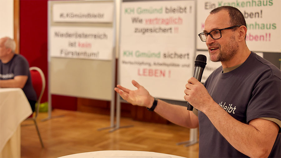 Menschen aus der Region erklären in kurzen Statements was die Schließung des Krankenhauses für sie bedeuten würde und wieso sie für den Erhalt des Krankenhaus Gmünd eintreten.22.01.2026: Pressekonferenz Plattform NÖ