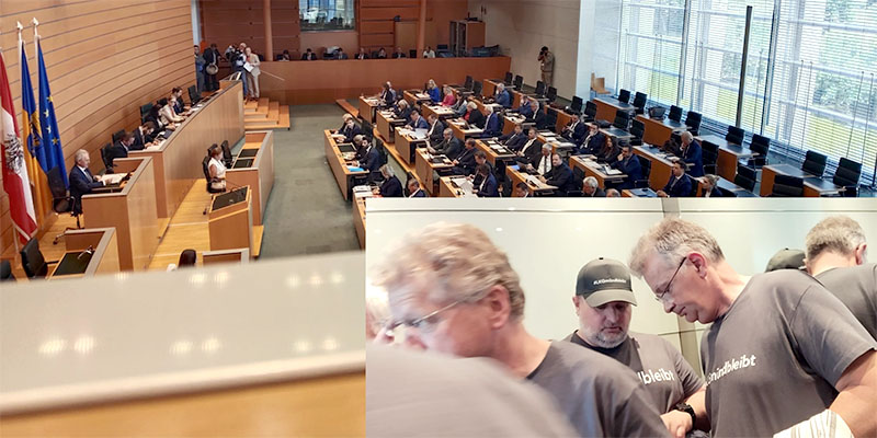14. Juni 2025: Eine Delegation von Aktivist:innen der Bürgerinitiative #LKGmündbleibt besucht eine Sitzung des Niederösterreichischen Landtags. Sie verfolgen die Landtagssitzung auf der Zuschauertribüne um gesehen und gehört zu werden und um das Anliegen, das Krankenhaus Gmünd zu erhalten, sichtbar ins Land zu tragen. Im Anschluss gibt es in Hirschbach ein Treffen mit regionalen Bürgermeistern und ihren Stellvertretern zu einer parteiübergreifenden Sitzung. Der Austausch mit den verschiedensten Vertretern aus Politik und Bevölkerung ist wichtig. Nur gemeinsam sind wir stark und können was bewirken.